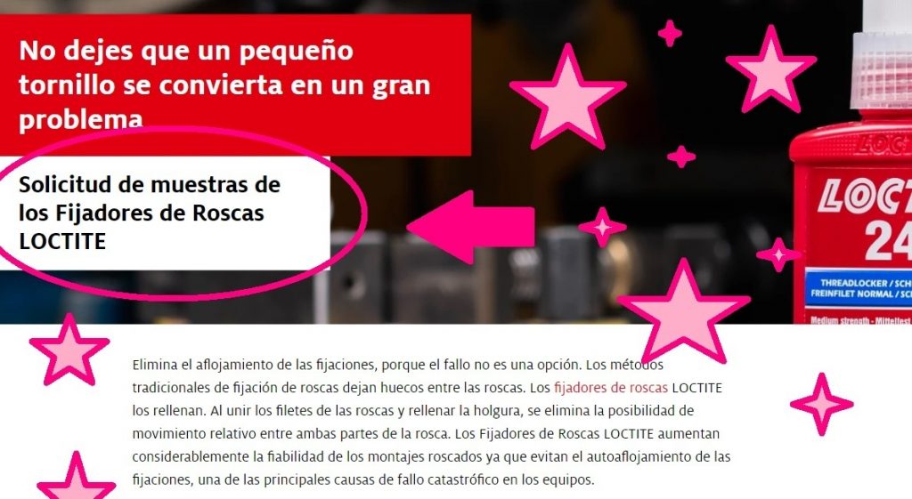 - Te llevará a la web de Loctite dónde ofrecen estas muestras.