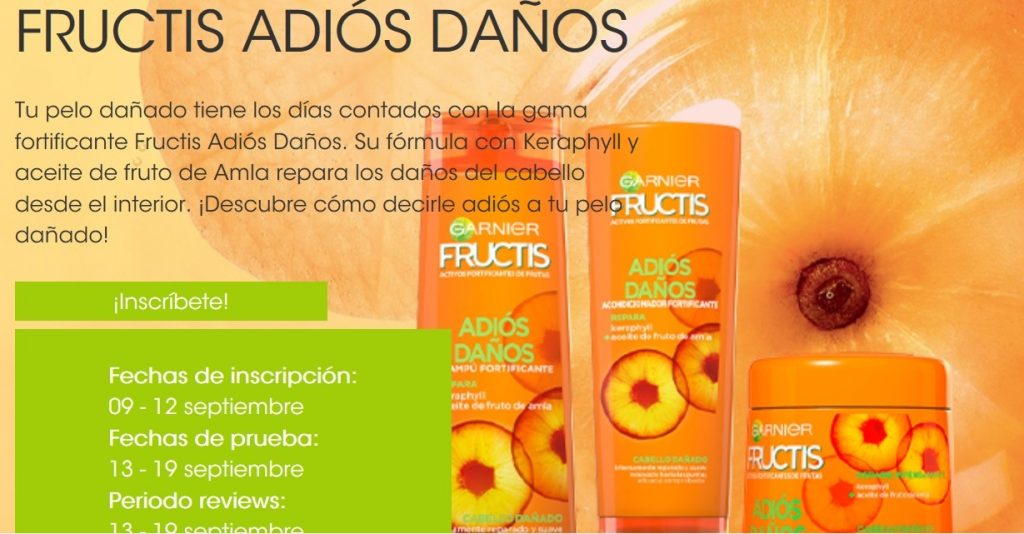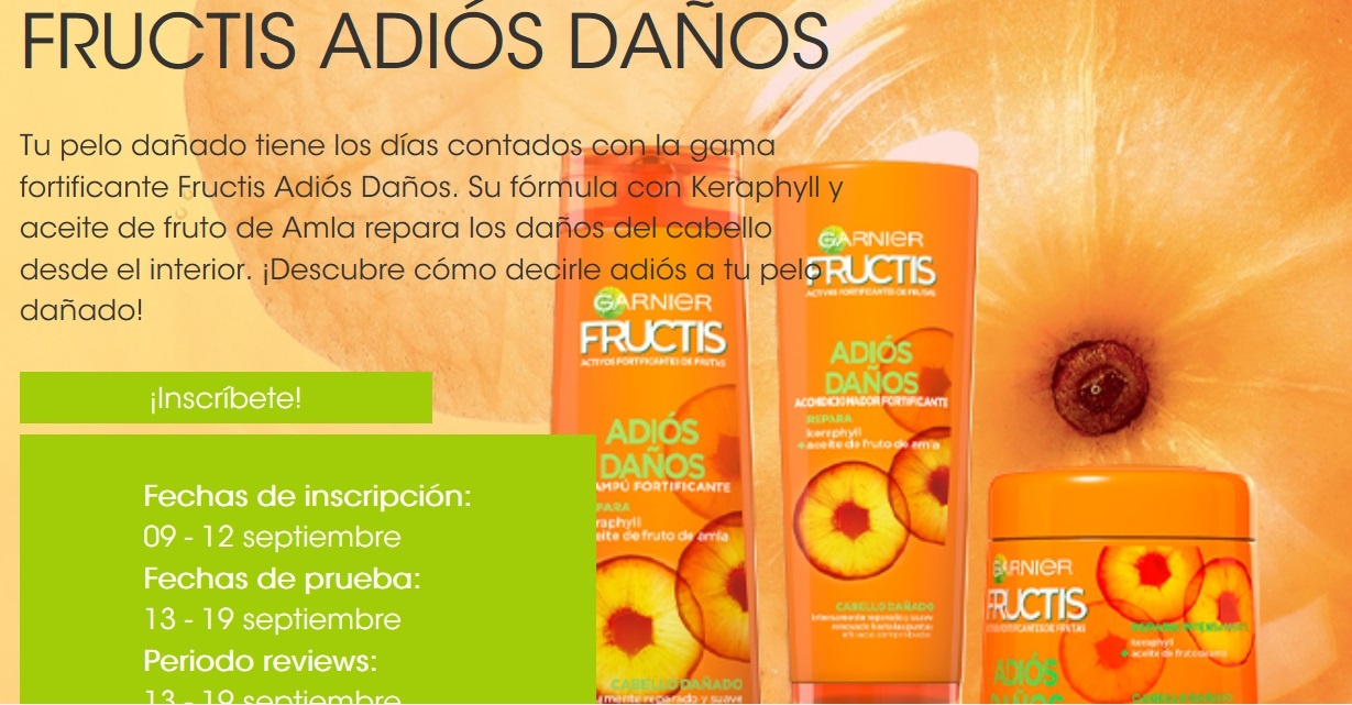 Me gustan mucho estos proyectos que nos ofrece Garnier para conocer sus productos porque van muy rápido. En esta ocasión buscan a 200 chicas para probar gratis Adios Daños y darnos su opnión en las Redes Sociales.