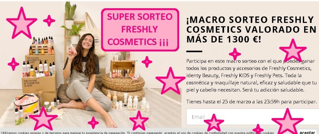 WAUUUU¡¡¡ Menudo sorteo nos trae Freshly Cosmetics para este mes de Marzo 2021 en el que 1 afortunado se llevará TODOS…. (repitos TODOS) los productos y accesorios de Freshly Cosmetics, Identy Beauty, Freshly KIDS y Freshly Pets. Toda la cosmética y maquillaje natural, eficaz y saludable que tu piel y cabello necesitan. Será tu adicción saludable.