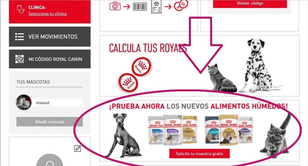 - Debes de estar registrado en Royal Canin para poder solicitar tu muestra gratuita.