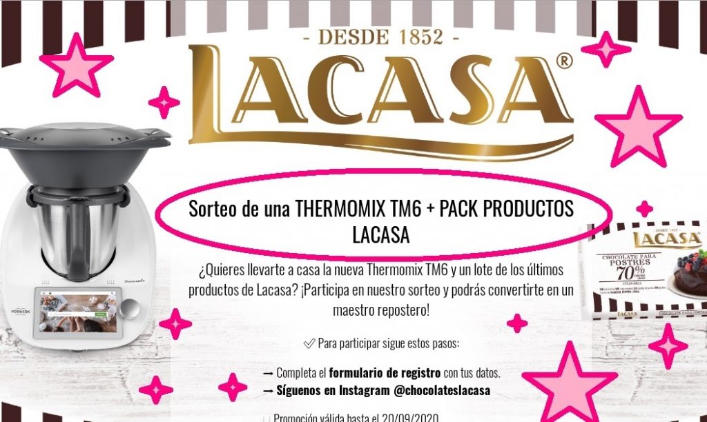 Desde Chocolates La Casa tenemos nuevo sorteo y en esta ocasión 1 afortunado se llevará para casa una Thermomix TM6 y un Lote de productos La Casa de repostería para seguir preparando delicias culinarias ahora que empezamos esta nueva etapa otoño – invierno.