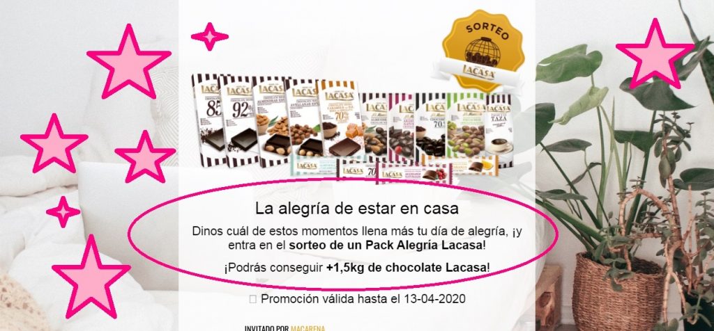 Chicas me apuntado a este sorteo fácil de Chocolates La Casa dónde podemos ganar 1 lote de Cocolates La Casa ¡¡ Hay pocos ganadores…ya sabéis que me gustan los sorteos mas grandes…pero como es fácil y hay un gran premios para el ganador… Os he querido dejar la información para participar en este sorteo