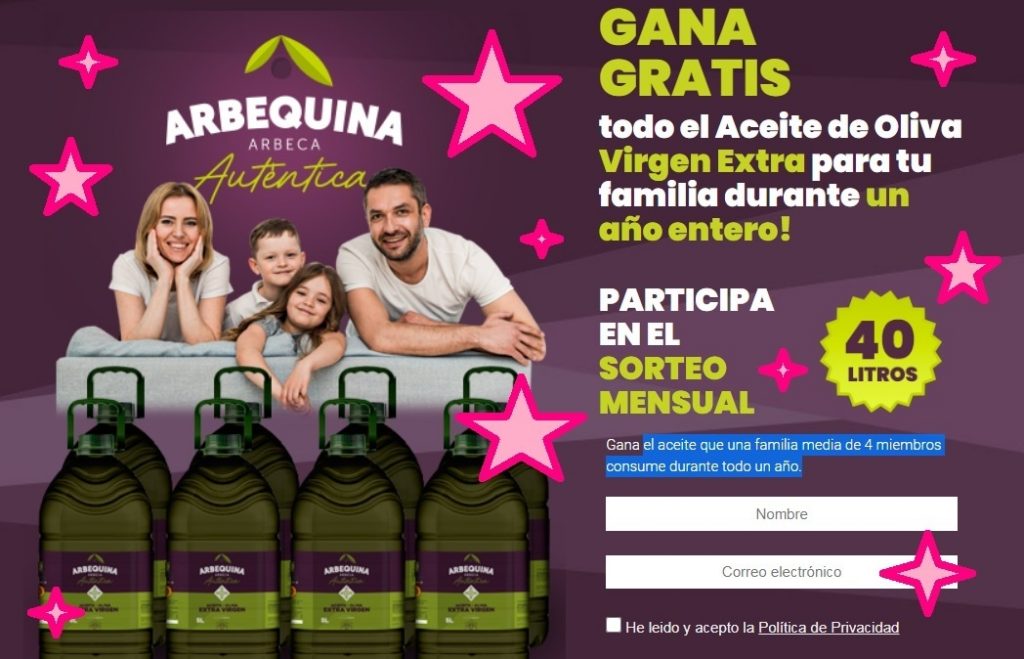 - Te llevará a la web de Arbequina.coop dónde ofrecen este sorteo.