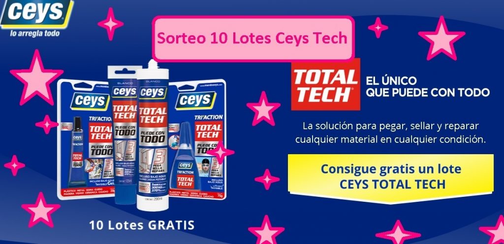 Nuevo sorteo de parte de Ceys en el que regalan 10 lotes de Ceys Tech para para PEGAR todo tipo de materiales, SELLAR todo tipo de juntas y REPARAR en condiciones extremas, hasta debajo del agua. Y 10 afortunados podrán probar esta gama completa de Ceys Tech y ponerse manos a la obra para hacer todas esas pequeñas reparaciones en casa.
