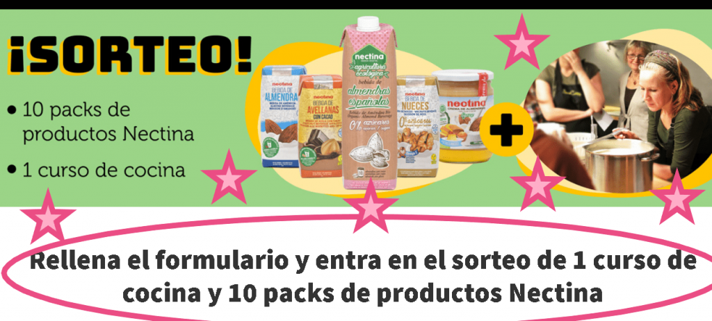 Mer acabo de apuntar a un sorteo de parte de NECTINA en el que regalan 10 lotes de sus productos y un curso de cocina. Es un sorteo rápido y fácil, así que os animo a apuntaros por si hay suerte …¡¡¡Estos premios siempre vienen bien en casa¡¡