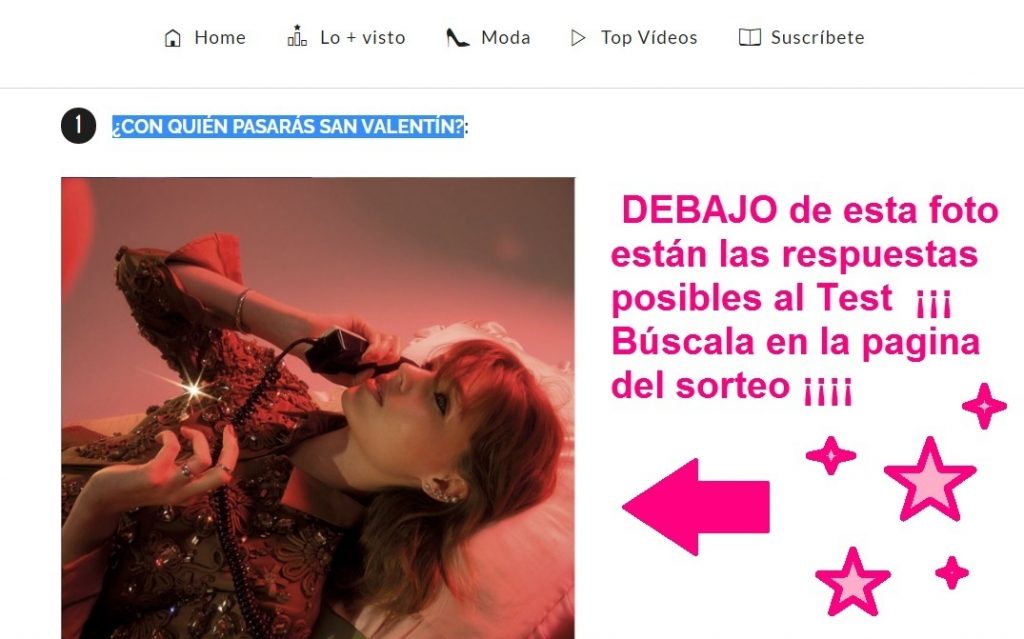 ESTA ES LA FOTO que debes de buscar en la página del sorteo. Justo debajo están las 4 respuestas posibles para ir completando este test.