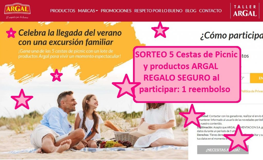 ¡Suerte chicas con este Sorteo de 5 Cestas de Picnic , y tenemos el consuelo de que TODO el que participe recibirá el cupón para 1 REEMBOLSO de 1 producto Argal.