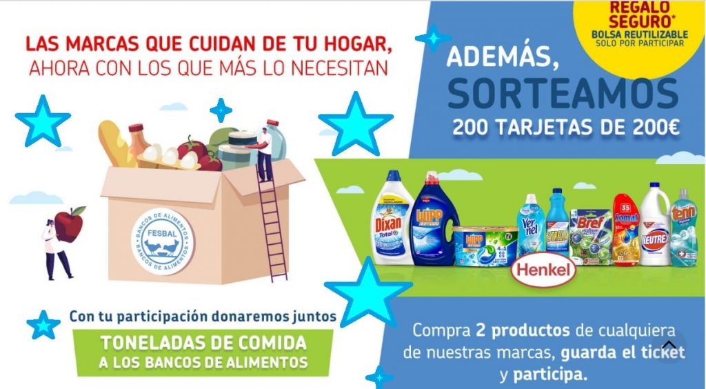 Tenemos nuevo sorteo de Henkel y en esta ocasión por la compra de 2 productos Henkel entraremos en el Sorteo de 200 Tarjetas Regalos de 200 euros¡¡ Además solo por participar tenemos regalo seguro de una Bolsa Reutilizable para nuestras compras ¡¡