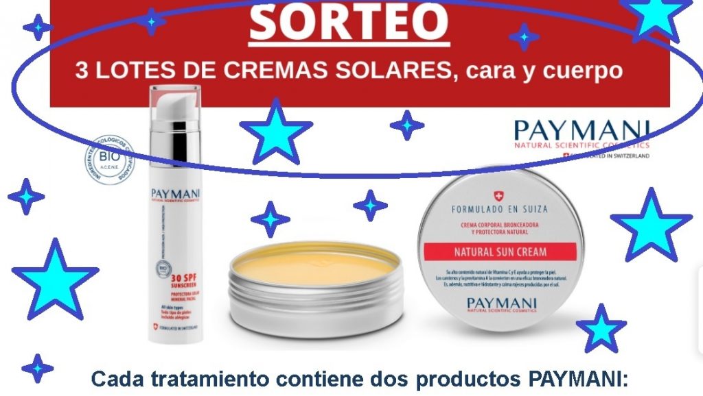 Sorteo de 3 Lotes PAYMANI de Protectores Solares, cuerpo y rostro …¡Y es que ya se va acercando el veranito¡ Es un sorteo rápido y fácil, os llevará menos de 1 minuto registraros en él. Hasta hace unos meses no tenía demasiada información acerca de esta marca, pero lo cierto es que estos sorteillos se han vuelto una costumbre en PAYMANI y nosotros nos apuntamos a todos¡
