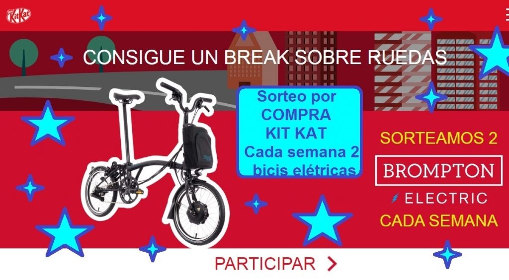 ¡Mucha suerte para todos los que compréis de manera habitual KIT KAT con este sorteo semanal de 2 bicis eléctricas¡