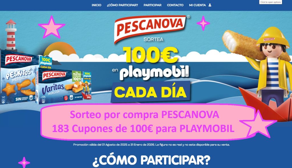 ¡Mucha suerte para todos con este sorteo de PESCANOVA y sus 183 cupones por valor de 100€ para gastar en PLAYMOBIL!