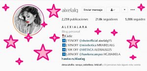 En el perfil de Aixelalg vamos a encontrar dos sorteos activos y en los que estamos a tiempo de participar; un sorteo de 1 lote de Ibéricos y otro sorteo mas en el podemos conseguir 1 bote de Young Ginko. Desde su perfil Aixelalg nos comparte fotos de productos y opiniones, le encanta la moda y complementos y nos ofrece descuentos para diversas tiendas online, en su perfil lo encontraréis todo.