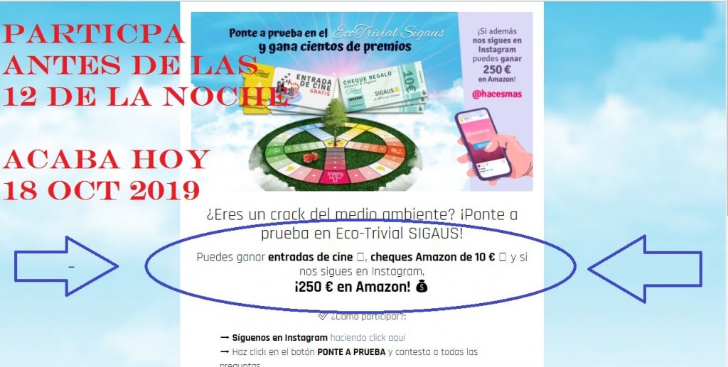 Mirad que concurso en encontrado en el que podremos ganar uno de los 30 cheques Regalo Amazon que regalan, o una de las 100 entradas de cine participando en el Trivial de Sigaus. Para participar nos proponen que contestemos 5 preguntas relacionadas con el medio ambiente.