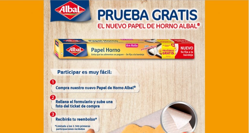 - Puedes consultar toda la información y detalles de esta reembolso para probar gratis papel de Horno Albal aquí, Bases Legales.